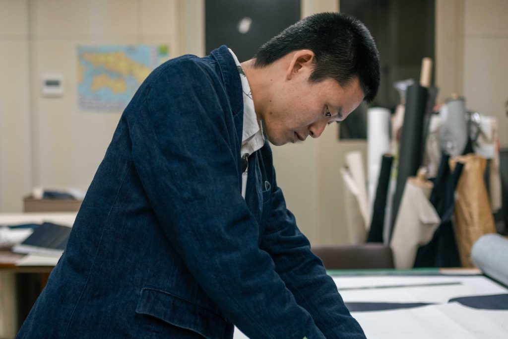 工場で出迎えてくれたのは、今回の取り組みに関わった新規事業部の湯浅遼太さん。デニムとジーンズの違いについて尋ねると、「デニムは生地の種類。ジーンズは服の形の名前。そう思っていただけるとイメージしやすいです」と教えてくれました。山陽染工で取り扱う生地は、デニムだけではありませんが、デニムの産地で100年以上染色加工をしてきた会社だけあって、「会社の歴史は、デニムの可能性を模索してきた歴史だと思う」と話す湯浅さんの穏やかな口調のなかに、誇りがにじみます。